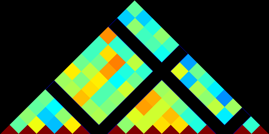 Explore how genes influence each other’s expression. Each diamond shape represents the correlation in expression for the two genes located at the end of the extended diagonals. Dark red represents the strongest positive correlation. Mouse over the diamonds to see the Pearson correlation coefficient for each gene pair.